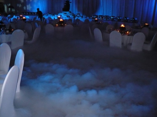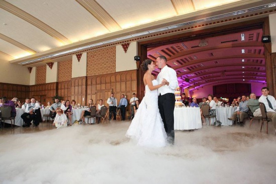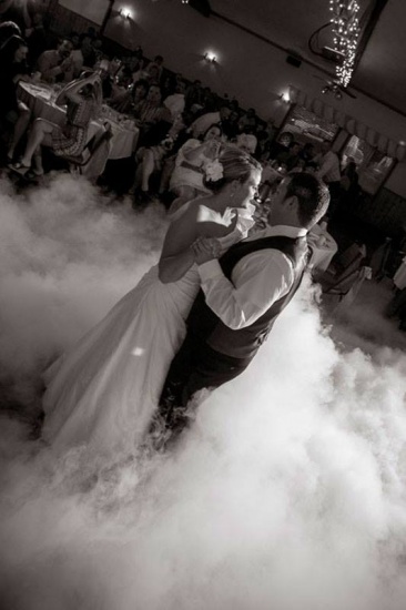 Kłębiący się delikatnie na parkiecie dym pomoże także uzyskać niesamowite zdjęcia czy film weselny z pięknym pierwszym tańcem.